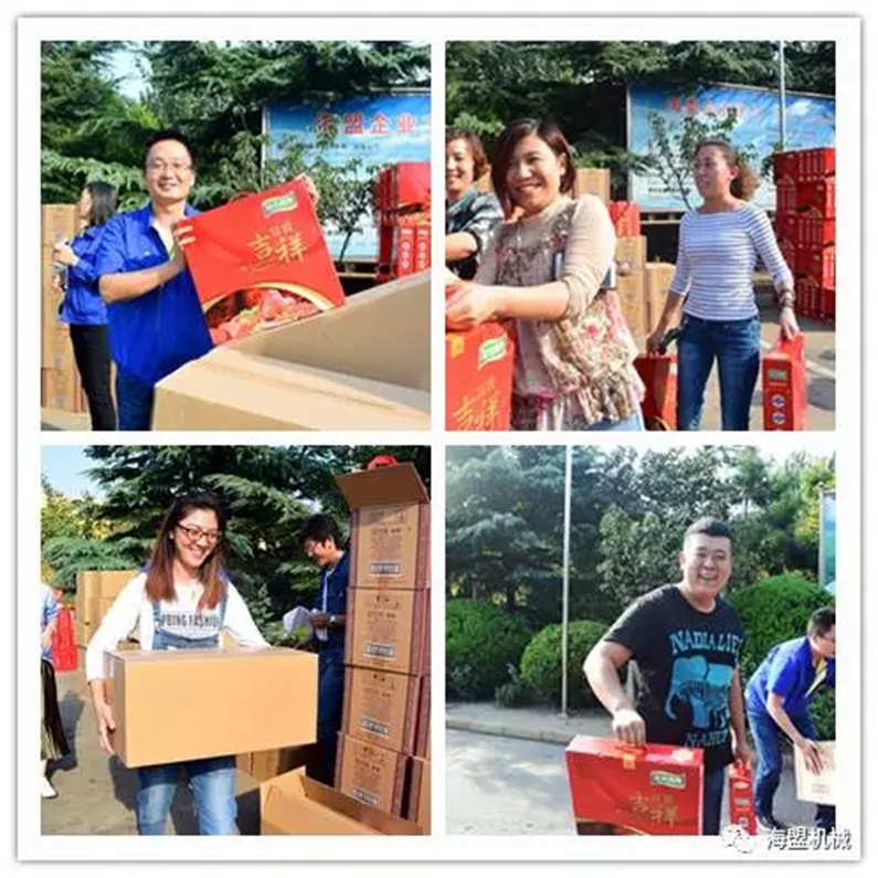 這是員工領(lǐng)福利時有感而發(fā),順口編的小詩,接下來,我們一起來看一下同事們領(lǐng)中秋禮品時的快樂笑臉和熱鬧場景吧!